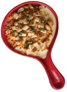 Why did the chicken go to the beach? No one knows for sure, but one thing is certain: Chicken on the Beach is a top menu choice for many locals heading to their favorite Mexican restaurant. Featuring grilled or marinated chicken and fried rice smothered in a cheese- based sauce, restaurants make their own sig- nature take by adding their unique flavorings to the cheese sauce (you had most locals at “cheese”). If you don’t see it on your menu, it also goes by Pollo Bandido or Arroz con Pollo (ACP). Whatever you name it, many of us here call it a must-have. Noche Cantina and Cocina, Los Bravos, Hacienda, and numerous other Mexican restaurants in the city serve up Chicken on the Beach.