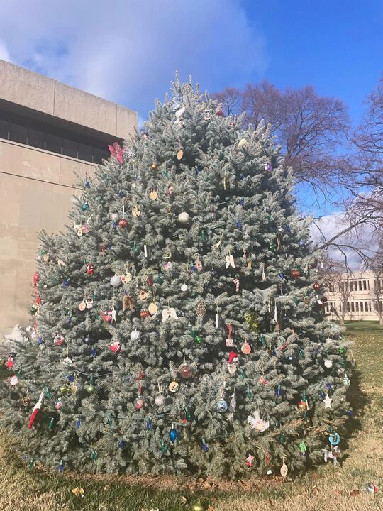 While at the Civic Center, round the corner to the south and visit a blue and green tree with ornaments honoring those in Indiana who have been affected by organ donations and transplants. It is decorated with handmade ornaments, candy canes, and more. Sponsored by the Indiana Donor Network, this tree serves as a symbol of reverence for donor heroes and a beacon of hope.