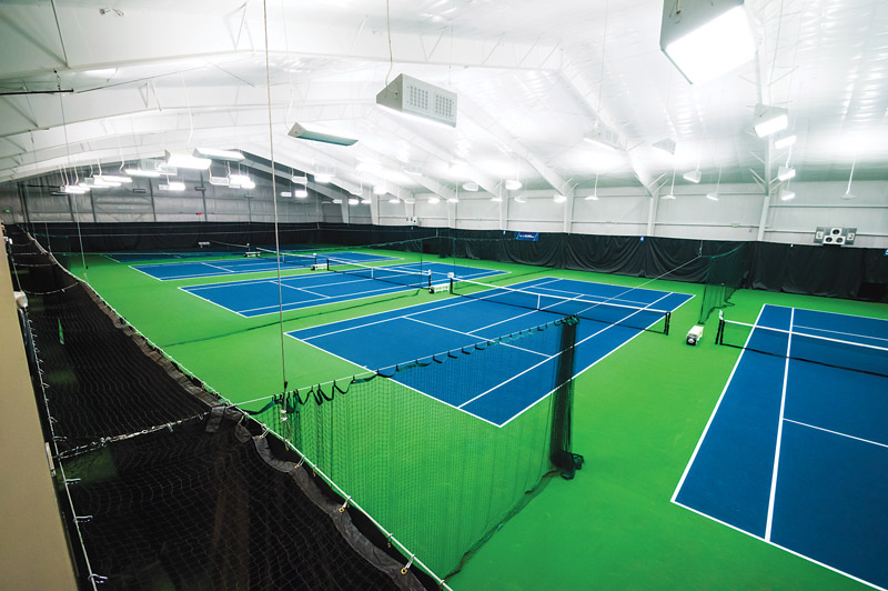 Inside, there is a high-level feel to the main part of the building, which houses six courts that meet the specifications of the United States Tennis Association for sanctioned events. They are blue courts, just like you’d see at the U.S. Open. Called championship (level) courts, you certainly couldn’t argue if you’re looking at them under the brilliant LED lighting system.