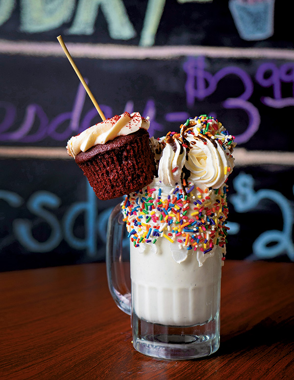 “My good friend and our food service provider Greg follows the latest food trends,” says restaurant owner Richie Patel. “He noticed they were doing extreme shakes in bigger cities, and no one was doing it in Evansville, not even the ice cream places.”