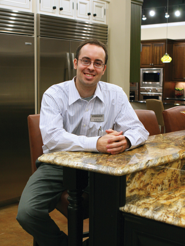 Though the hundreds of bathroom and kitchen fixtures and appliances available in the Ferguson Enterprises home store are online, nothing replaces the experience of shopping in person, says Andy Cook, branch manager of the local Ferguson. In the Internet Age, the concept is increasingly rare, but the 7,000-square-foot showroom is one exception. The first Evansville Ferguson showroom opened on Morgan Avenue and moved near Burkhardt Road a year ago. Today, the Morgan location acts as a warehouse and distribution hub. The new location is a “destination showroom,” says Cook, where “people drive from miles and miles away because we offer a lot of products in one location.”