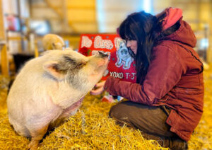 Through her role as an adoption coordinator for Brownsburg, Indiana, nonprofit Oinking Acres Farm Rescue and Sanctuary, in August 2020, Toni rescued Tutu, along with 14 other pigs, from a perilous situation in Michigan. They were left with more than 65 other pigs in an unregulated breeding environment that got out of control. It was amidst this chaos that Toni found Tutu and, along with Oinking Acres, gave her a chance for a better life.