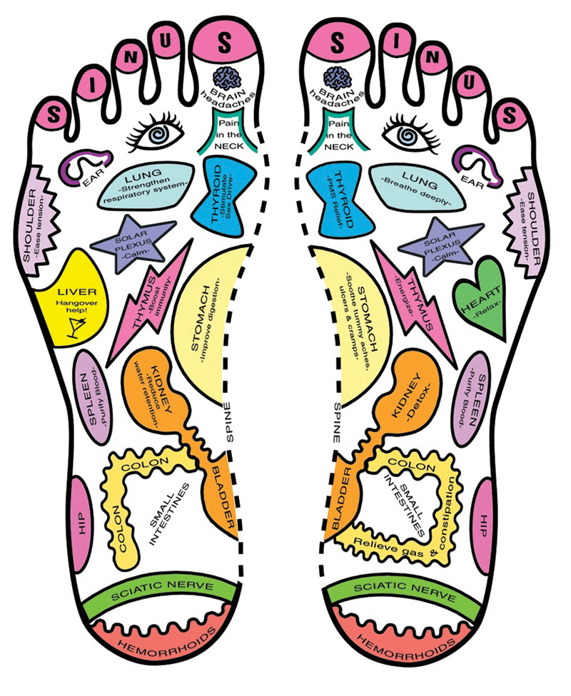 When I phoned Hummel for an appointment, she explained that during a 60-minute session she would focus on my feet; in 90-minute sessions, she also works on the client’s hands and head. She requested I dress in loose clothing, as reflexology is performed fully clothed, minus your shoes and socks. Arriving at my appointment, Hummel first talked with me about my general health history and explained she would use a combination of reflexology methods to meet my needs — which she would further assess during the treatment.