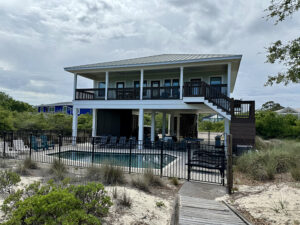 Beach Foam Baby is centrally located on the island. Here’s a quick lay of the land. The center of the island has more of a beach town feel. It is anchored by the St. George Island lighthouse, multiple eateries and small stores, and a playground. The eastern end of the island is the Dr. Julian G. Bruce St. George Island State Park, offering nine miles of undeveloped white sand beach. Toward the western end of the island is the Bob Sikes Cut, a channel sliced into the island by the U.S. Army Corps of Engineers in 1954 to allow fishing fleets and other vessels to access the Gulf of Mexico from the bay side. About five miles east from the cut is the entrance to The Plantation, a gated community that has brought more than a few celebrities to St. George Island. Here, about 100 homeowners consider The Plantation their primary residence. About half of the 500 single-family homes are available for rent. Collins Vacation Rentals offers many luxury units within The Plantation, including the spectacular Lazy Gator, where our group of nearly 20 enjoyed a farewell dinner prepared by private chef Ian Williams of Your Table! Your Chef! bespoke dining experiences.