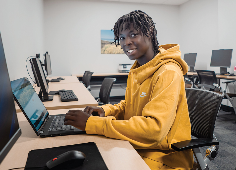 “I’m usually part of the welcoming committee,” Spencer, 28, says. “It’s different every day. I’m always helping somebody do something around this building.” She aspires to be an oncologist and is on track to become a nurse through Ivy Tech Community College Evansville’s health care specialist program.