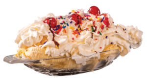 the famous noodles, cheese, and corn with your choice of chips, more corn, mayonnaise, and optional jalapeños surrounding the bowl. For those with a sweet tooth, Helados’ dessert menu is headlined by huge banana splits made from at least eight rotating flavors of ice cream, which Lopez makes herself. Whipped cream, melted chocolate, strawberry syrup, and cherries are piled on top, but the loaded version of the banana split includes coconut-strawberry syrup, granola, and pieces of strawberry and pineapple. To wash it all down, try a Monster Loco, a Monster energy drink flavored by chamoy, tajin, and a little bit of salsa, along with mango and slices of orange.