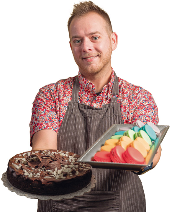“I love a challenge. I find myself doing some sort of baking every day,” he says. “I like vintage recipes the best and I definitely like to make my food look pretty. People eat with their eyes.”