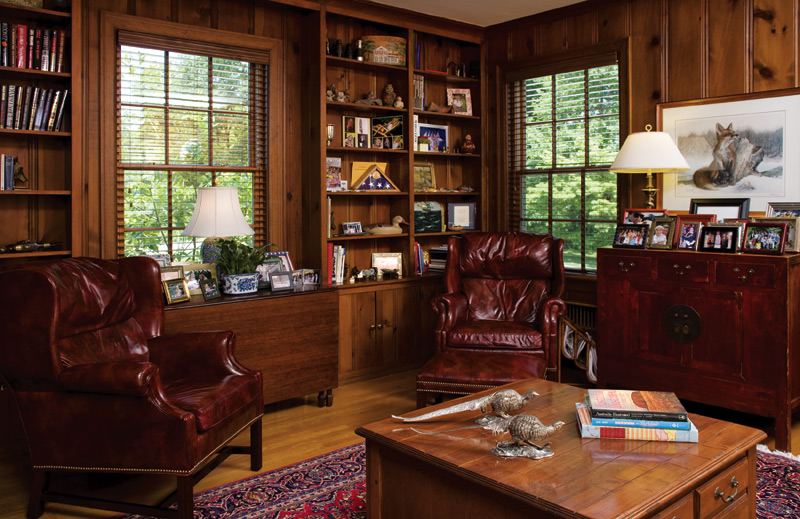 The O’Daniels purchased their current home in McCutchanville 11 years ago and embarked on updating the house that sits on three and a half acres overlooking the lake. “We really did very little cosmetically to the house,” explains Missy, who notes that the previous owners had done some extensive renovation on the property, but the O’Daniels gutted the basement — formerly a storage area and garage — and remodeled it as a hangout for their children and their friends. The basement now is outfitted with a full kitchen, bath, big-screen TV, and overstuffed furniture, plus a custom-made pool table manufactured by Escalade Sports in Evansville.
