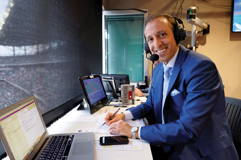 “It’s an ever-growing catalog of info,” he says. “After I feel fully prepped, it’s time to grab a bite in the press box, walk around and chat with beat writers and the opposing announcers. The analyst (Francoeur) and I typically have to do a pre-game segment from 6:30-6:35 p.m. Then we come on the air for our true ‘broadcast open’ around 7:10 p.m. At 7:20, it’s time for the Toyota starting lineups, Ford keys to the game, and first pitch. Play ball!”