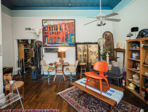 Along the way, the Guards decided to make the building’s upper level their own home — a colorful, attractive loft that, like New Harmony itself, blends nostalgia with contemporary touches. (Read more about their apartment.)