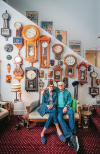 Both had worked in antiques in their former lives and transferred that skill to New Harmony in the form of Artefakts, a gallery at 507 Main St. After they bought the space in April 2023 from Larry and Patricia Gosh, the Smiths enjoy running a shop as they had in the past. Artefakts opened on July 4 and displays eclectic items for every walk of life, including clocks, coins, art, musical instruments, oriental rugs, jewelry, and more.