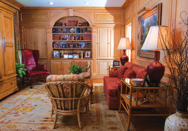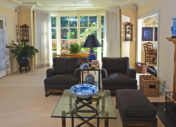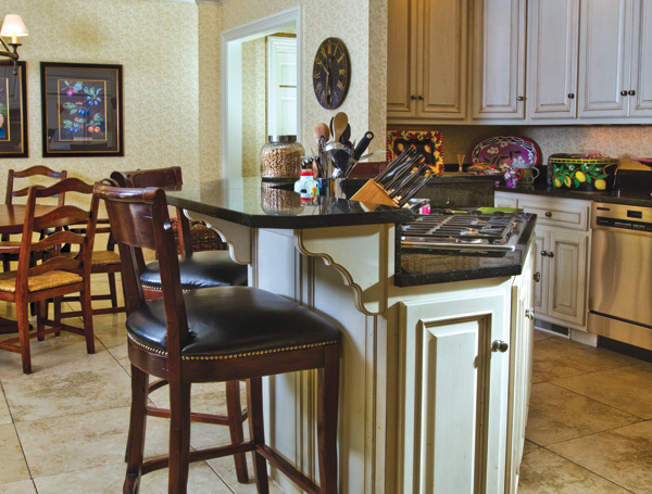 She turned to Erickson, whose Downtown shop is a treasure trove of opulent pieces: Karges screens, French chests with ormolu mounts, and Imari porcelain — some hundreds of years old. Evansville Living featured Erickson’s home in its January/February 2007 issue (“Objects of Desire”), and though Kristie had the designer’s influence, her home is not a reiteration of Erickson’s viewpoint. This home boasts comfy couches; rich, warm rugs and carpets; and stools at the kitchen counter for quick snacks. It says, “This is for family.”