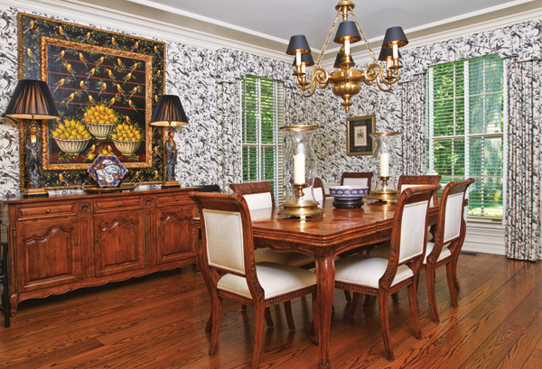 Printed wall coverings are consistent throughout the home, expressing style from both Kristie and Erickson. The dining room and master bedroom carry an unintended theme of birds. They’re found on the walls, drapes, and paintings. “My taste is evolving,” Kristie says. “I don’t like a lot of clutter but wanted important pieces.”