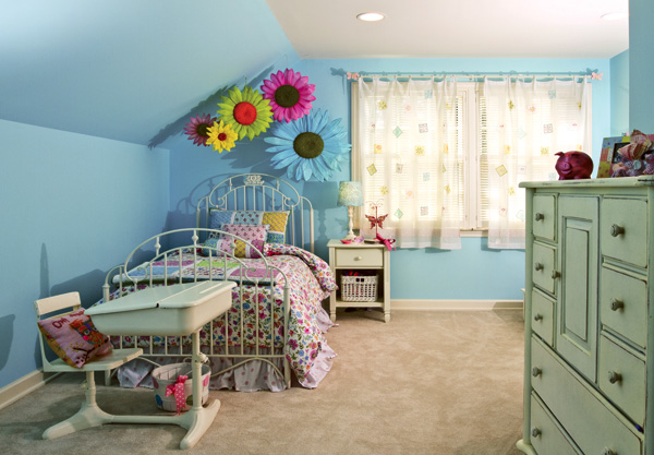 The site is now occupied by families like the Alexanders. Their dedication to family is apparent inside their five-bedroom home. Above the dresser in Matt and Kristie Alexander’s youngest daughter’s room is a portrait. The subject matter is the daughter at a younger age with the same golden hair and a sweet grin. A former housekeeper painted the portrait from a photograph. It was one of Kristie’s favorite photos of her youngest daughter. “(Our maid) took it home and painted it as a surprise,” Kristie says. The décor surrounding the painting looks like a vignette from a Pottery Barn catalog. Bright blue walls contrast with colorful flowers that adorn the ceiling over quilted bedding.