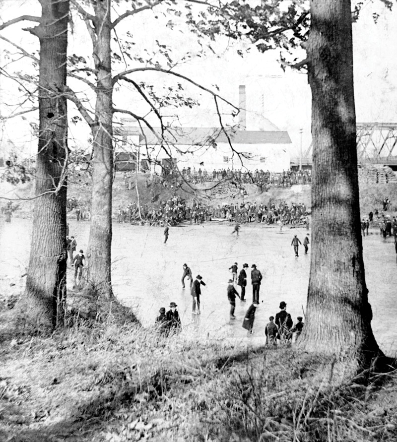 Fishing and ice skating were major attractions. Summer stagnant water also made the pond a health nuisance, with calls to drain it. In 1906, the Big Four Railroad purchased the lake and over the next few years a wooden trestle was built and the lake was finally drained. By 1911, the railroad offered to let the city use it as a dump. As a result, and over the course of time, all traces of Sweezer’s Pond have disappeared.