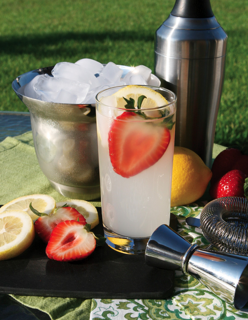 So revered is the Tom Collins that the drink — most well known as a refreshing cocktail on summer days — has a namesake sexy and slender glass. It first surfaced when America was turning 100, but with a long history, how the Tom Collins came to be is tough to pinpoint. A few historians credit a London waiter named John Collins for the drink’s name while others cite a fictitious, bad-mouthing, bar-loving Tom Collins for sparking the cocktail’s popularity. What is clear, though, is the Tom Collins still is a sweet drink. For this recipe, we added strawberries, a fruit made for summertime indulgence.
