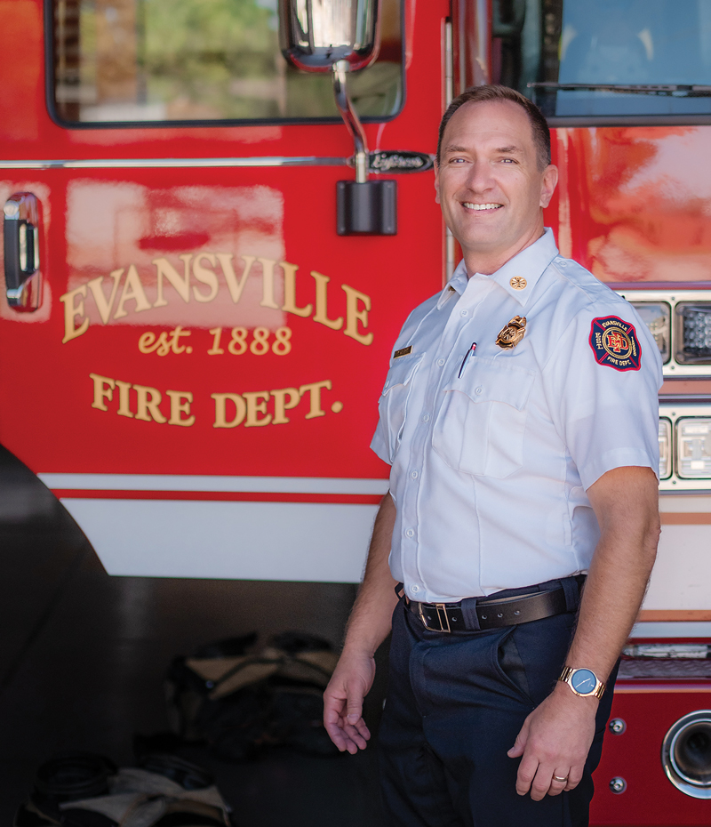 “I have three main principles that I am leading this department by: honor the mission, support our people, and change the culture,” Knight says. “I want the people in the fire stations to know that they have just as much power as I do when it comes to developing the Evansville Fire Department.”