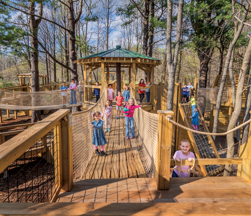 These child volunteers were consummate professionals during a spring shoot in, under, and around the Arwood Family Treehouse at Wesselman Woods. Look closely — Helena, the daughter of Senior Account Executive Jessica Hoffman, and Adele and Eva, daughters of photographers Zach and Audra Straw, make cameos in this City View cover image!