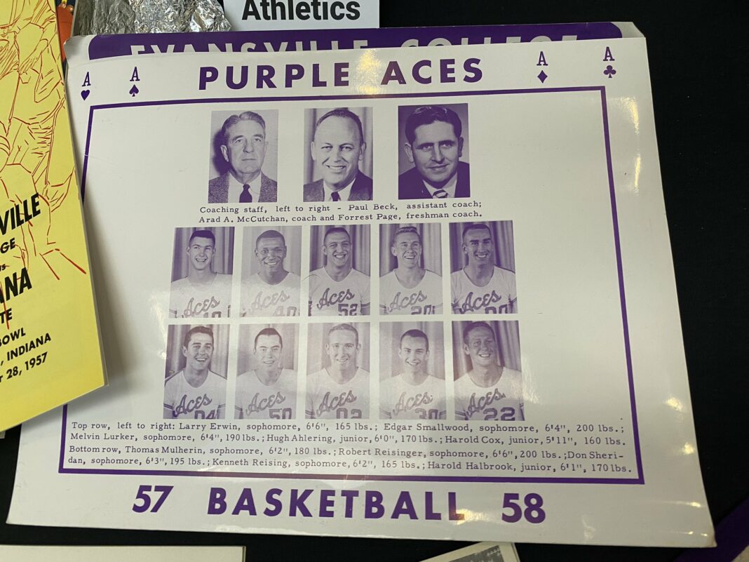There’s a reel of film of a Butler vs. Evansville basketball game and a program from an Indiana State vs. Evansville football game.