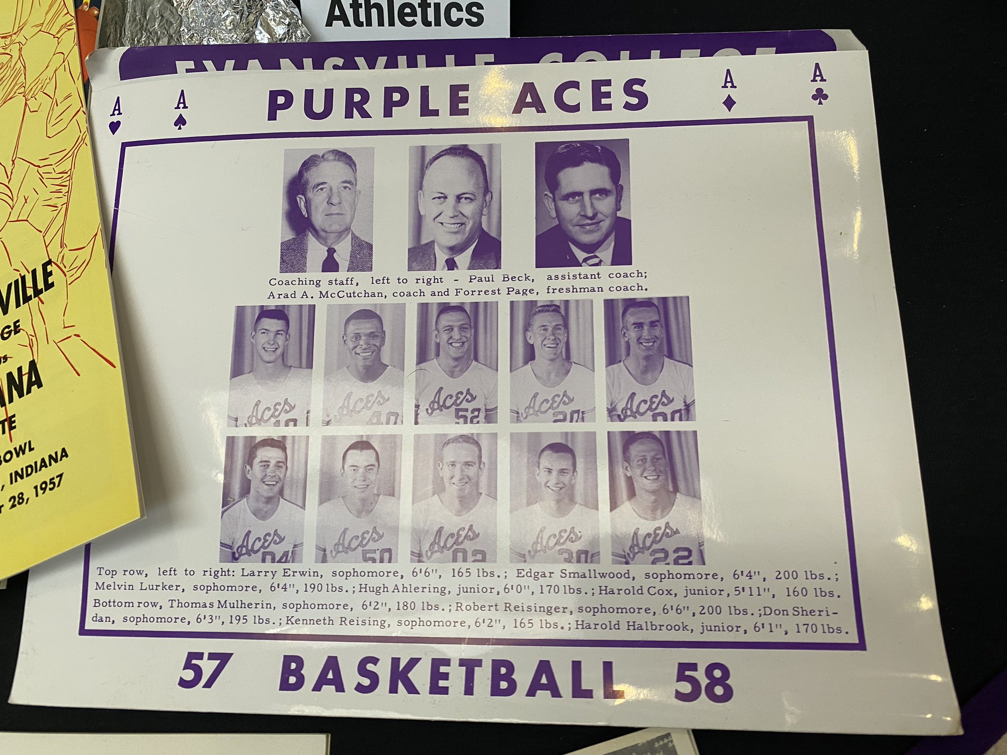 It has a program from the 1958 NCAA Division II national tournament at Roberts Stadium, where the Purple Aces were semifinalists. (They won the title in 1959 and four more times before moving to Division I in 1977.)
