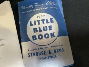 Photo by John Martin. This 1950s Blue Book, in which students logged phone numbers and other pertinent information, was part of a time capsule unearthed when the University of Evansville demolished Hughes Hall.