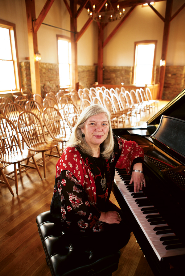 Thousands of music lovers have traveled to New Harmony in the ensuing years to enjoy what Mumford calls “world-class music” in the river town of less than 900 inhabitants. The list of performers is impressive and wide-ranging, from popular blues vocalist Maria Muldaur to Chinese classical pianist Chu-Fang Huang, a finalist in the prestigious Van Cliburn International Piano Competition. Two years ago, the concert series included the John Jorgenson Quintet, known for its French gypsy jazz, and the Brazilian samba vocalist Vera Mara. On March 14, The Lovell Sisters, a bluegrass trio who won A Prairie Home Companion’s National Teen Talent Competition in 2005, will perform at the granary; on April 4, this season’s finale concert features a nine-piece swing band from Chicago, Speak Easy Swing.