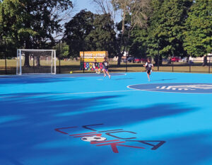 “It is concrete but has a special covering that makes it weather resistant,” Brown says. “After a year, it still looks like new, and we use it a lot. … We are about to start our fall league with eight teams, and not all are Latinos. It’s bringing people together like you have no idea.”