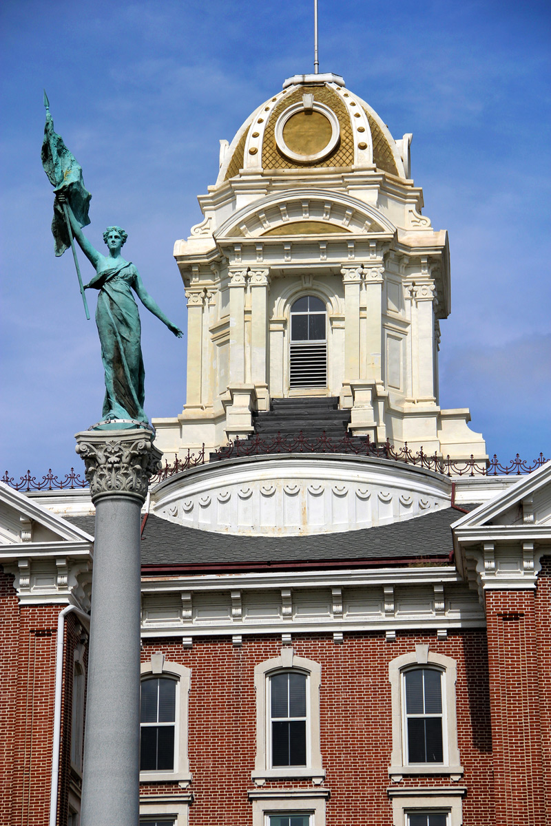 The Posey County Soldiers and Sailors Memorial is on the lawn of the Posey County Courthouse in Mount Vernon, Ind. This memorial was erected in 1908 to honor Civil War soldiers and sailors from Posey County.