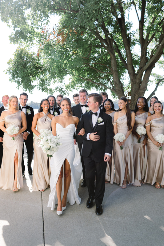 Diving into the details of wedding planning, and especially dress shopping, was enjoyable for Payton. Chase was happy to support her vision and see it all come together. Their Sept. 27 wedding was set at the Evansville Museum of Arts, History & Science, with nearly 300 guests in attendance. The ceremony unfolded on the sunny west lawn overlooking the riverfront. “We loved the ceremony, as we were surrounded by our family and closest friends acknowledging our commitment to one another,” Payton says.