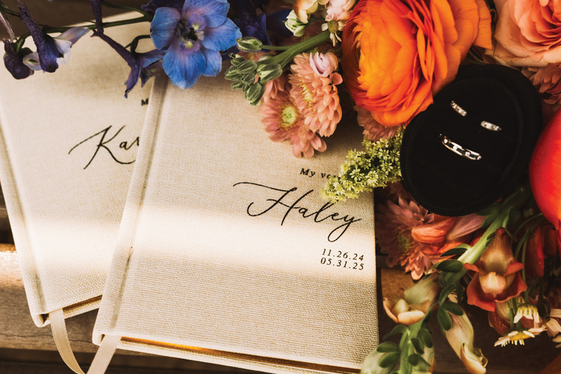 For Haley Elpers and Karoline Chraponski, their college degrees also led them to their wife. Haley, who grew up in Evansville and graduated from Mater Dei High School, met Karoline at the University of Evansville during sorority recruitment in 2018. After one conversation, they felt drawn to each other and became best friends. “In January 2020, we decided to take the leap and explore our potential as a couple and have been together ever since,” Karoline says. After dating four-plus years, they arranged dual proposals at their home in summer 2024.