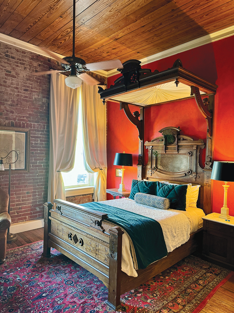 Back in Brenham I retired to the Ant Street Inn. Its 15 uniquely furnished guest rooms feature antiques, canopy beds, Oriental rugs, and stained glass, creating a welcoming and sophisticated environment. The second floor rooms share a large parlor, a warm and elegant space for reading, games, conversation, or the already mentioned Blue Bell ice cream from the guest freezer. Breakfast ordered from a menu is served in the lobby level Brenham Café.