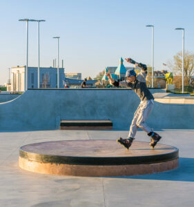 Sunset Skatepark hardly is the only attraction on the city’s riverfront. Next to the skatepark is Mickey’s Kingdom, an expansive, all-ages playground built by community volunteers and opened in 2018.