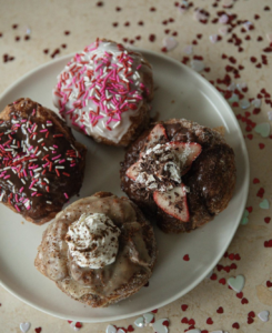 Chocolates and candy may seem a cliché Valentine’s Day gift, but they’re popular for a reason. If your loved one has a sweet tooth, consider pre-ordering chocolate-covered cherries, cheesecake bites, or strawberries from GaylaCake, or splitting a slice of a limited-edition Oreo red velvet cheesecake at Café Arazu in Newburgh, Indiana. Take your sweetheart to breakfast at Parlor Doughnuts and pair a seasonal carnival doughnut or chocolate-covered strawberry doughnuts with a honey rose latte. Just Rennie’s also is offering Valentine’s pre-orders of heart-shaped cakes in strawberry, chocolate, and red velvet; chocolate cupcakes filled with chocolate mousse; and cookie boxes and dessert platters. You can also find heart-shaped cookies, cakes, and long johns from Donut Bank or an “I <3 You” sugar cookie box or a heart-shaped chocolate chip cookie cake from Be Happy Pie Company.